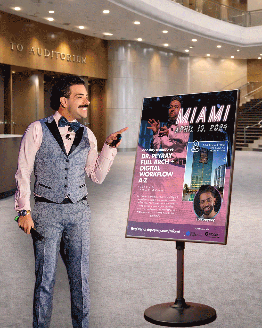 Whether it means mastering Full Arch Dental Implants, integrating an advanced Digital Workflow, or enhancing patient satisfaction, Dr. Peyray’s in-person courses, online training, and live events will bridge the gap between where your practice is now and where you envision it to be. Transform your practice, overcome common challenges like lengthy procedures and patient dissatisfaction, and elevate your expertise with Dr. Peyray’s proven methods and personalized coaching.